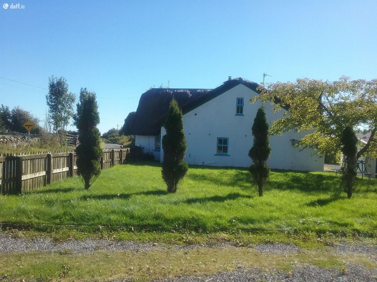 The thatched house has been vacant for some time and may qualify for appropriate grants to improve its overall condition and energy rating. The house has a unique character with a combination of many old style and modern features. There are five bedrooms together a bathroom, a sitting room/dining room, kitchen and utility. One of the bedrooms is en-suite and the bathroom is tiled. There are timber floors throughout the ground floor area. There are a number of unique features such as the thatched roof, small sash windows, a metal spiral staircase to the first floor, a brick fireplace in the sitting room and a fireplace in one of the bedrooms. This is a large property which had an extension added some years ago .
